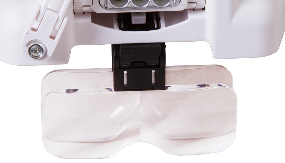 Levenhuk Zeno Vizor HR Head Rechargeable Magnifiers feature illumination powered by a rechargeable battery. The lenses can be freely combined and allow for achieving different magnification values. You can turn up the lenses if needed: that allows for observing the working area with the naked eye.