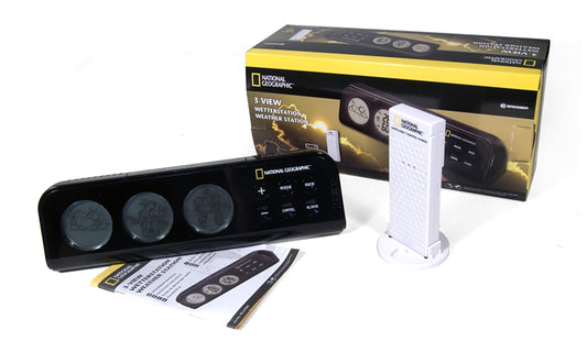Bresser National Geographic Meteo Station with three screens is a compact, modern weather station in a horizontal body. LCD screens show detailed information about weather, temperature, humidity, date and time. The screens are equipped with a backlight that can be turned on when needed....- €54.95 EUR
