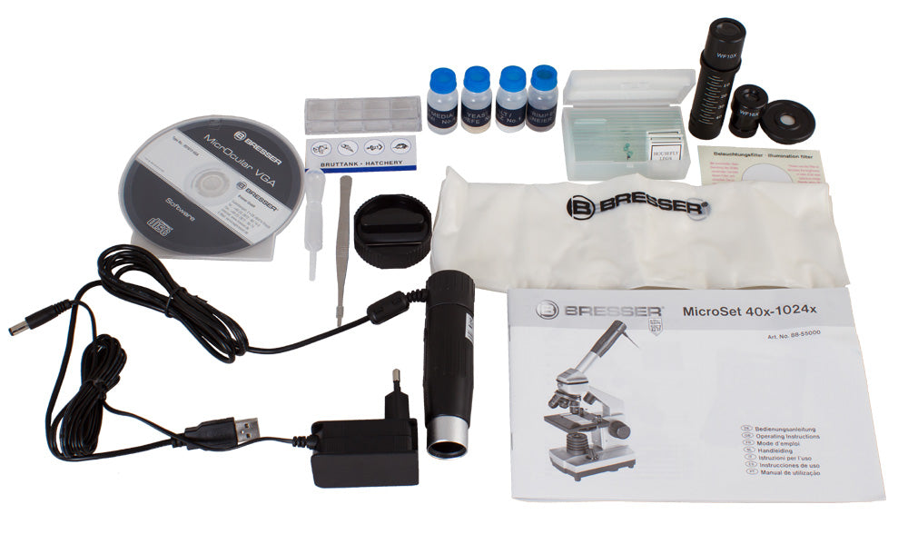 Equipped with the Bresser Junior Microscope, young scientists can turn small samples into large discoveries. Thanks to the zoom function, which has a 40–1024x magnification, all types of microscopy are available to young researchers.