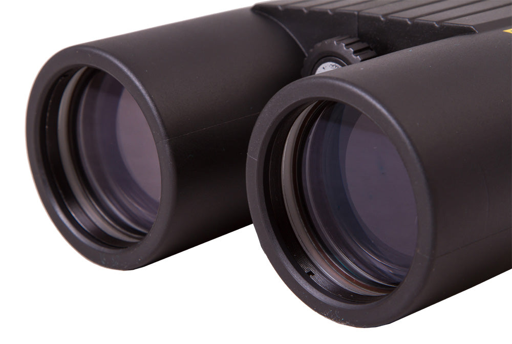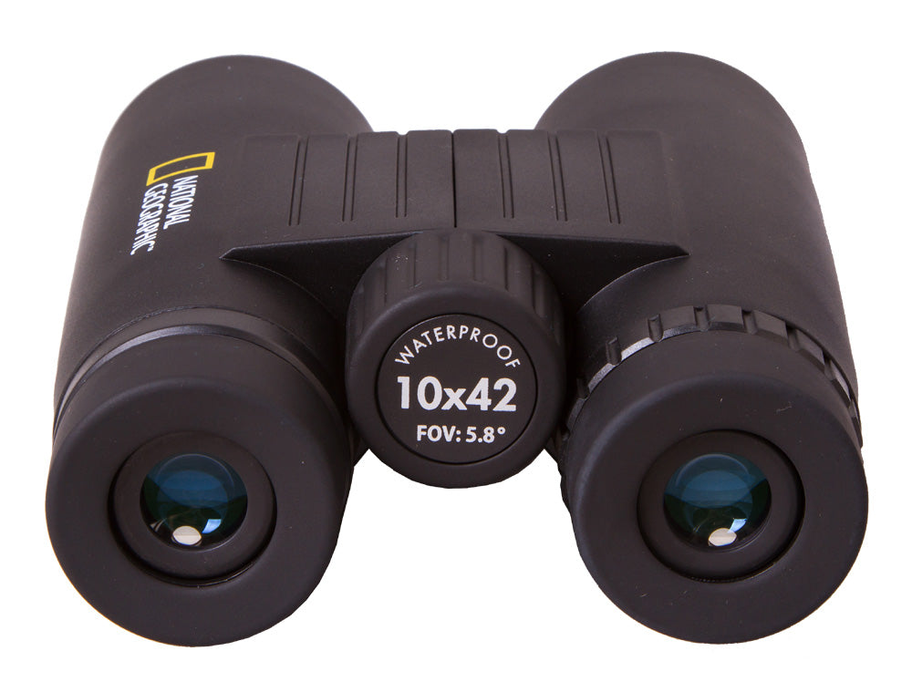 Bresser National Geographic 10x42 WP Roof-prism binoculars have quite compact dimensions. The shell is made of plastic and coated with rubber. They are completely protected from moisture: the binoculars are not afraid of dirt, snow, or water – they will serve you in any weather conditions. The optics are made of BaK-4 optical glass of the highest quality with several layers of anti-reflective coating to reduce glare. The diopter adjustment feature allows you to adjust the instrument to your individual needs. The binoculars have a special thread for mounting on a tripod. The binoculars will prove themselves invaluable at water sports, hunting, fishing, and field observations.