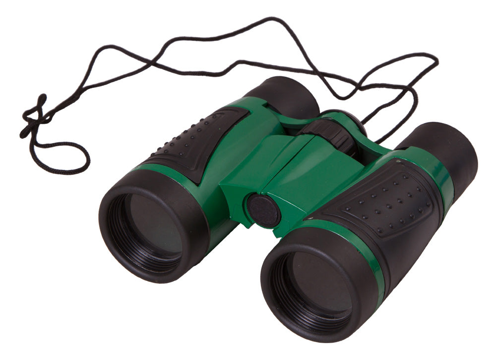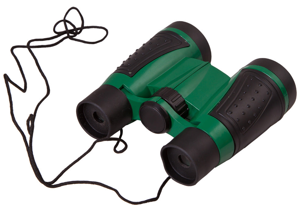 Small binoculars for daytime observations. Built using roof prisms and feature 4x magnification. You can adjust focus and interpupillary distance. All optics are made of high-quality optical plastic. You can observe any remote objects with these binoculars.