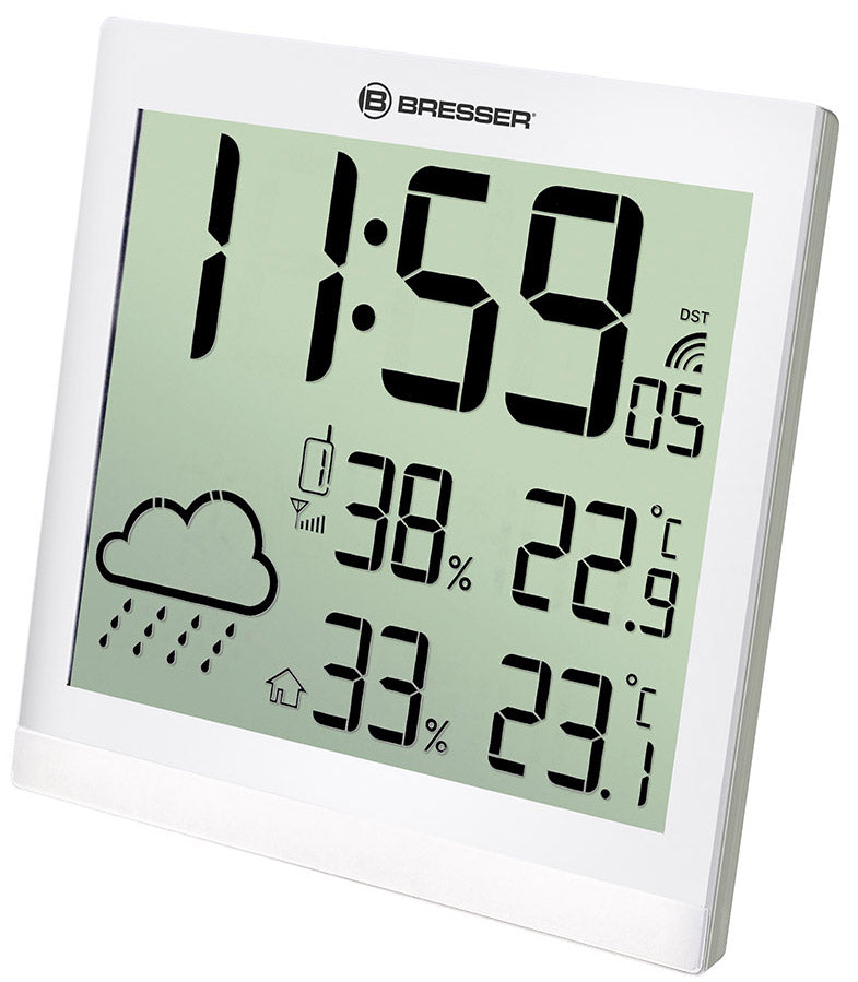 The Bresser TemeoTrend JC LCD Weather Clock has the worldwide first “ultra wide angle” (UWA) display. The large presentation and the broad viewing angle provide for an easy reading of the shown information from almost any position in the room.