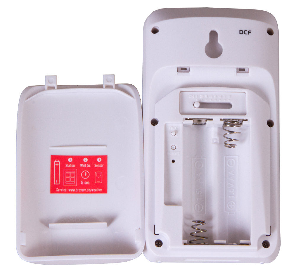 Power supply weather station: AC adapter (included) or AAA batteries – 3 pcs. (not included), outdoor sensor: AA batteries, 1.5V – 2 pcs. (not included)