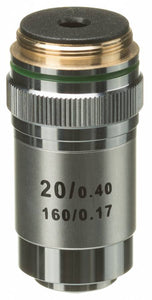 The Bresser DIN-Lens 20x is an achromatic lens with standard diameter to enhance the magnification variety of your Bresser Biolam or Researcher Microscope (not model ICD), also suitable for oil immersion.