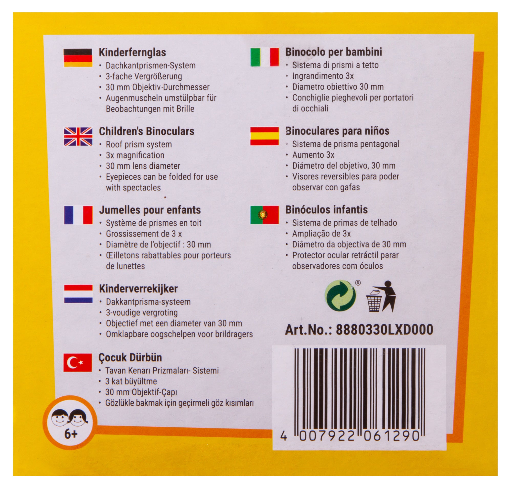 The Bresser Junior children’s binoculars give you a 3x larger view of rabbits, birds, squirrels and other discoveries on your forays into nature. Perfect for observing animals with the aid of the fine focus. Choose from different coloured binoculars.