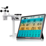 The Bresser 8-day 4CAST XL 7-in-1 Wi-Fi weather station with a solar-powered sensor features a modern design with a huge 48.3cm (19”) wide-angle colour screen for displaying your meteorological data. Ideal for offices, schools and plant nurseries – the base station is perfect for providing an overview of the weather in large rooms. In addition to displaying the data from your outdoor sensor, the Wi-Fi weather station can also connect to the Internet to display forecast data from the ProWeatherLive platform, including an 8-day weather forecast with maximum/minimum temperatures and the chance of rain, as well as the local visibility and cloud cover.