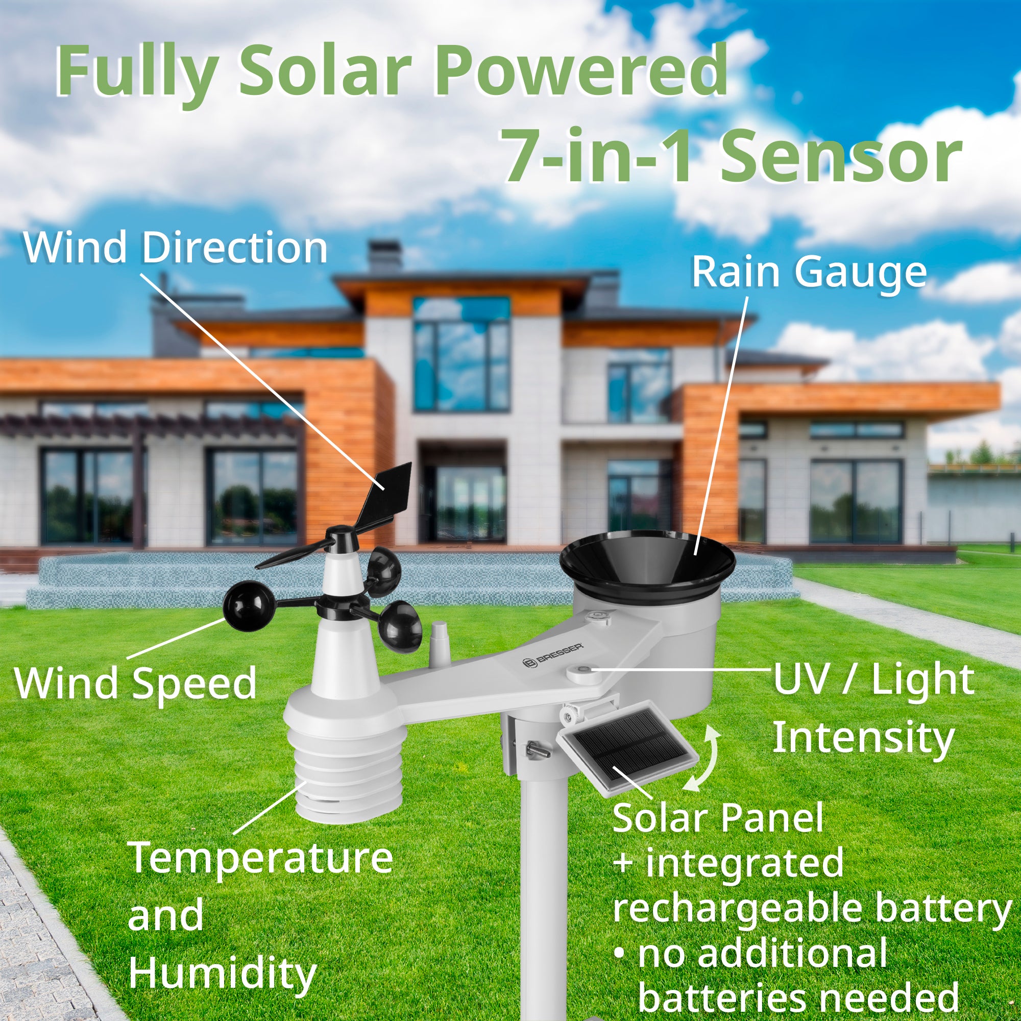 • Displays precise measurement data from the 7-in-1 solar outdoor sensor (outdoor temperature and humidity, wind speed, wind direction, precipitation, UV level, light intensity)
