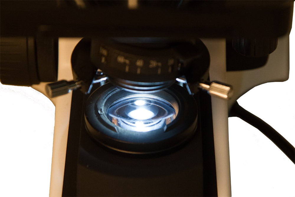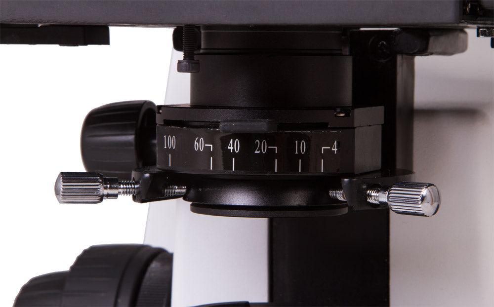 The illumination system of the microscope is also worth mentioning. All observations are carried out in transmitted light (a LED is located in the lower part of the microscope). An Abbe condenser with an iris diaphragm and light filter are used for adjusting Köhler illumination.