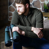 The optics in the binoculars consist of Porro prisms and fully multi-coated lenses made of BaK-4 glass. Five-element eyepieces transmit a flat image across the field of view and reduce any distortions of the picture to a minimum. The powerful zoom allows you to view remote objects in detail, and the high-aperture lenses are not affected even by dark winter nights. Binoculars are perfect for observations at any level of illumination.