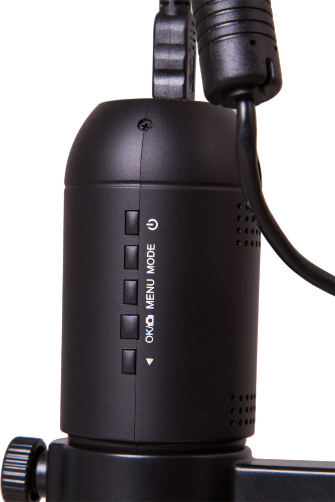 The microscope features smooth magnifications in the 10x-200x range and coarse focusing without jerks and backlash. Integrated illumination is used when external lighting is not sufficient. It consists of 8 bright LED lights that provide even illumination of samples. Illumination is powered by AC adapter or USB cable.