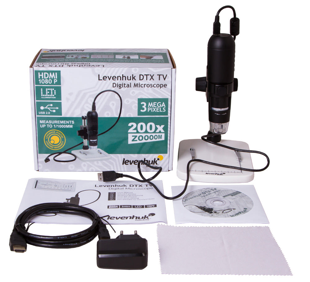 Levenhuk DTX TV is a great instrument for any passionate explorer of the world. It is equally great for observations of micro and macro objects. You will be able to read small fonts; observe tiny illustrations; and study biological samples, minerals, insects, and jewelry. The microscope can be connected to a PC or TV set to transfer images to an external monitor in real time.