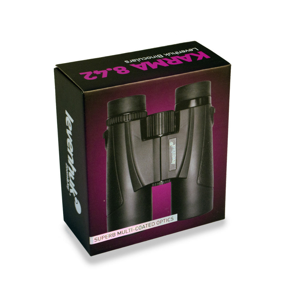 Levenhuk Karma 8x42 is a quality binoculars model for observations under any conditions, which is useful both in the city and in nature. The large 42-mm objectives collect enough light to provide bright images even in dusk. This model comes in a rubber-armored shell.