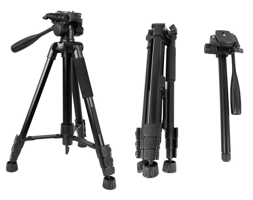 The Levenhuk Level BASE TR50 tripod is a compact and lightweight accessory that can be used for mounting a wide variety of photo video lighting and observation equipment. It is designed for standard 1/4' threads. Some types of equipment may require an additional adapter.