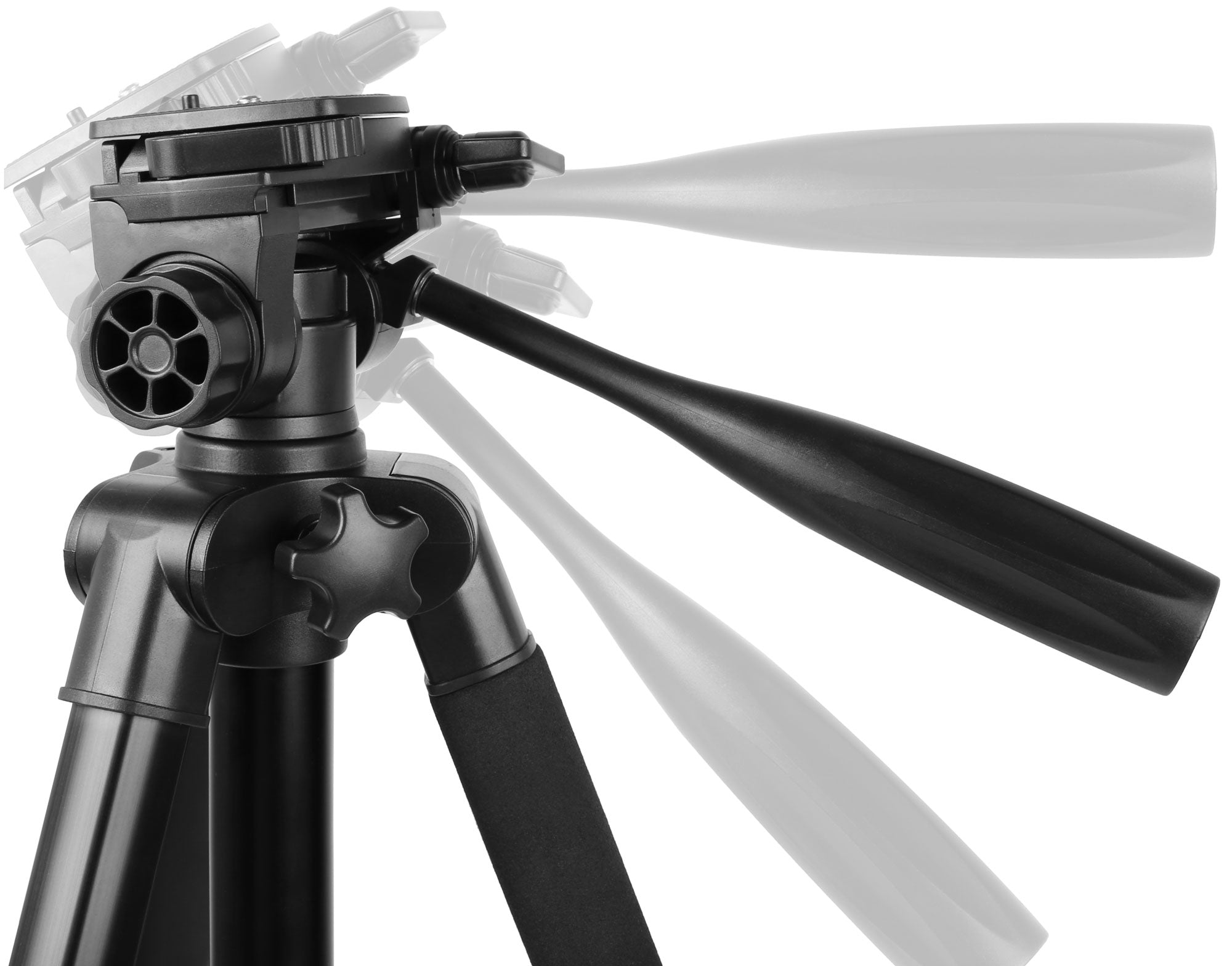 The head rotates 360° horizontally around its axis and tilts forward and backward while the lock can tilt sideways up to 90° enabling you to find a perfect angle for your device. In addition the center column of the tripod can optionally be used as a monopod. The quick release plate makes it easy to set up and change devices on the tripod.