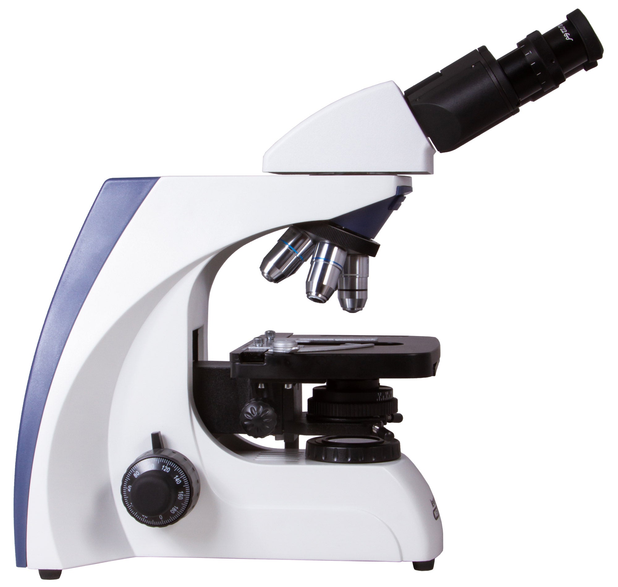 The mechanical stage can be moved along two axes. In addition, it has a mechanical scale for precise positioning of a specimen under an objective lens. Coarse and fine focusing are available. Due to smooth mechanisms’ movement, sharpness adjustment is done quickly and easily. An Abbe condenser is equipped with an iris diaphragm, and there is a filter holder as well.