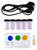 Wide-field eyepieces allow for adjusting diopters to customers' eyesight. The eyepieces provide 10x magnification. There are five objective lenses included; the ones with the highest magnification are equipped with spring-loaded frames to protect the optics from accidental damage. A 100x objective lens is used for conducting observations using oil immersion. All objective lenses are semi-plan achromatic and they enhance color rendering, eliminate optical aberrations, and significantly flatten a field of view. The optics of the accessories are protected with an anti-fungal coating. Sharpness is adjusted with the coarse and fine focusing adjustment knobs.