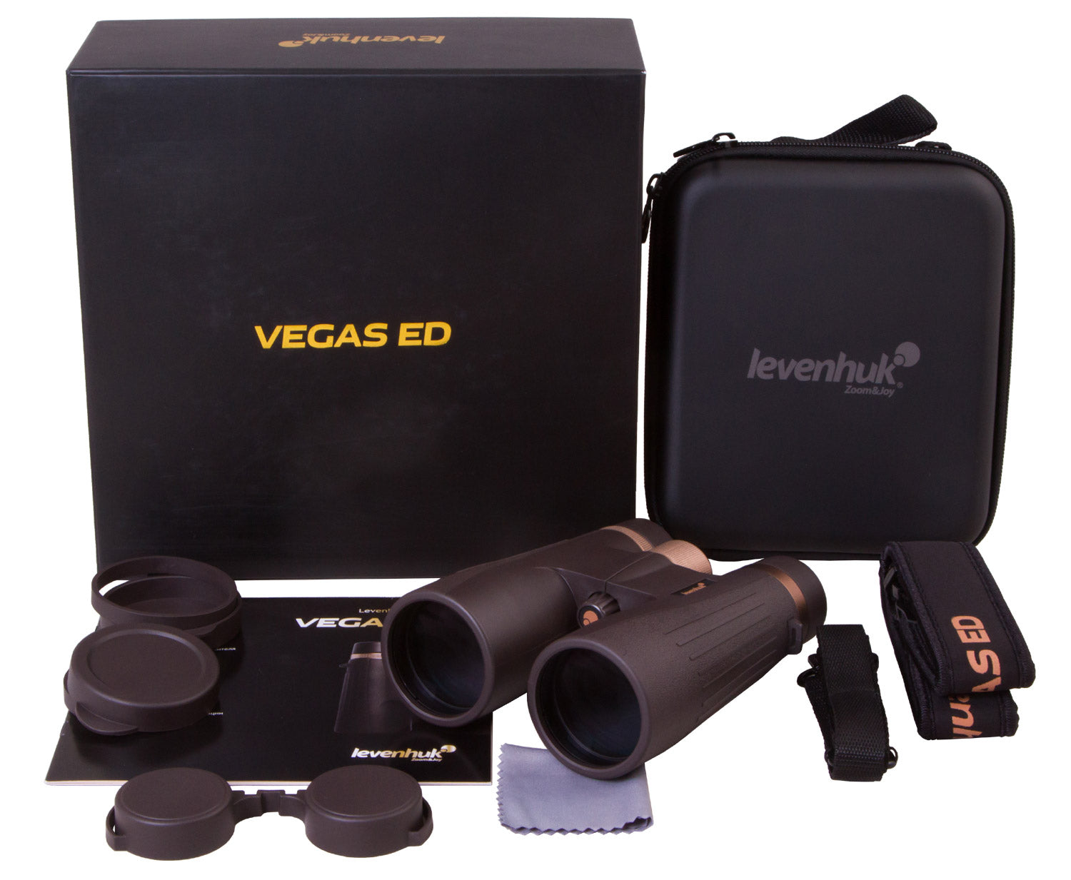 Levenhuk Vegas ED 12x50 Binoculars are a powerful high aperture optical tool with high-class optics. Extra-low dispersion lenses and prisms deliver a sharp and detailed image across the entire field of view, minimize optical aberrations, and feature natural color rendering. The binoculars are impervious to inclement weather and withstand any difficulties faced during hikes or journeys. Levenhuk Vegas ED 12x50 are a perfect choice for a hunter, fisherman, or anyone who enjoys active leisure.