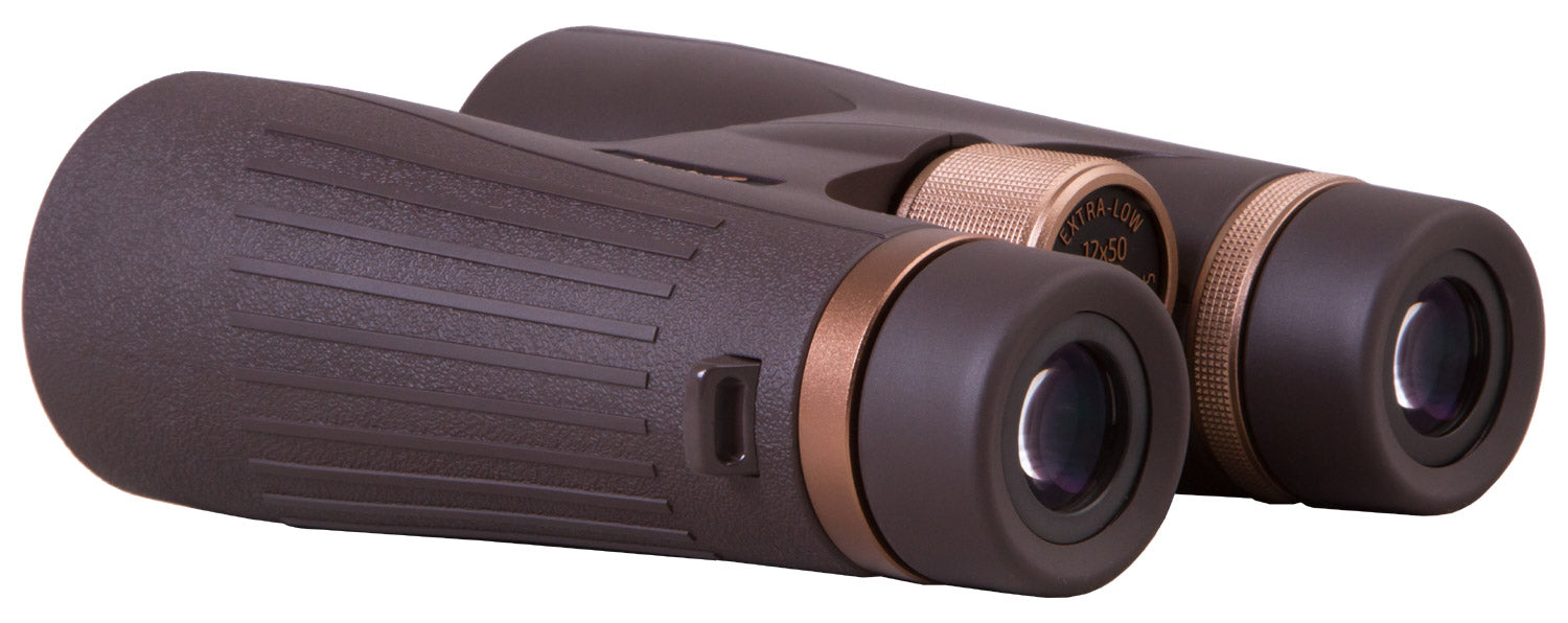 Light-gathering binoculars with coated extra-low dispersion optics. Magnification: 12x. Objective lenses diameter: 50 mm