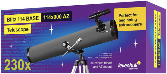 El telescopio Levenhuk Blitz 114s PLUS es un reflector newtoniano de enfoque corto para la exploración de objetos de cielo profundo y la astrofotografía. Gracias a su alta resolución, ofrece una imagen nítida y detallada de los objetos del cielo profundo y del sistema...- €204.88 EUR