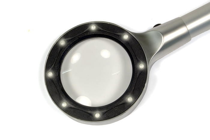 A lupa Levenhuk Zeno 500 tem 8 luzes LED incorporadas na estrutura que iluminam uniformemente a superfície de trabalho e não causam fadiga ocular durante o trabalho prolongado com a lupa. As luzes LED são alimentadas por duas pilhas AA normais (incluídas no kit) e vão servir-te durante muito tempo.